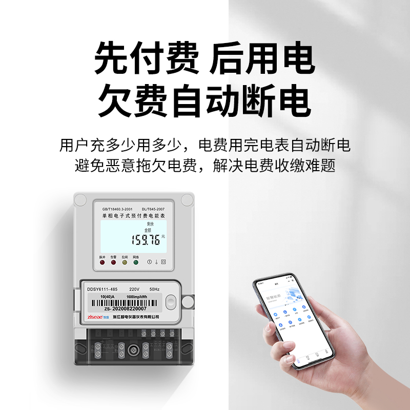 預付費電表,與常規通信裝置組網,或通過4G,NB等通信方式,將監測數據上傳至預付費管理系統,通過微信小程序進行繳費管理.。