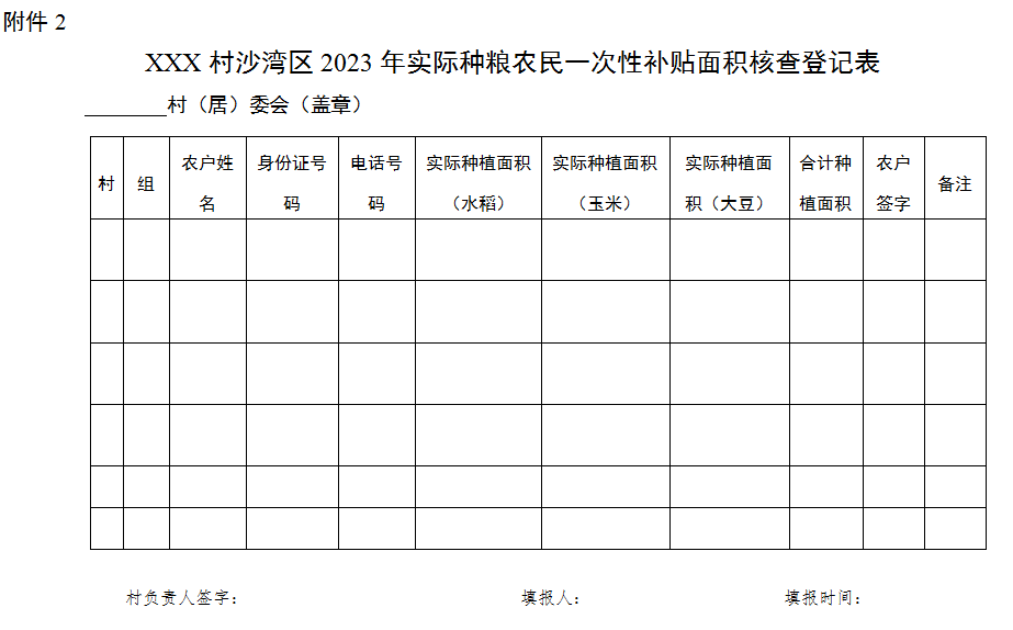 (一)基礎(chǔ)數(shù)據(jù)申報登記。各村、組在農(nóng)戶信息登記時必須準確填寫姓名、身份證號碼、手機號碼、補貼面積等內(nèi)容。普通農(nóng)戶按照附件2進行申報登記;合計種植面積超過30畝以上的種糧大戶,按照附件3格式申報登記。