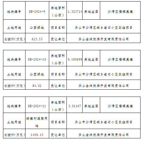 樂山市沙灣區自然資源局國有土地劃撥用地批前公示